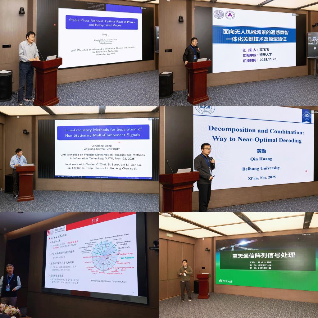 2025年11月22日至23日,由国家天元数学西北中心主办、西安交通大学数学与统计学院承办、华为技术有限公司协办的“2025年信息技术的前沿数学理论与方法”前沿学术研讨会在西安交通大学中国西部创新港成功举办。研讨会聚焦通信理论、信息论、压缩感知和机器学习等信息科学与技术前沿问题,吸引了来自浙江大学、清华大学、西安交通大学、北京航空航天大学、南开大学、哈尔滨工业大学、香港中文大学(深圳)等高校的三十余位知名专家学者参会,共同探讨信息技术发展的最新数学理论、研究方向与未来趋势,推动相关领域的交叉融合与创新发展。