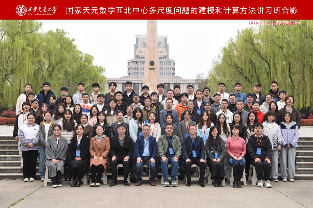 3月25日至30日,由国家天元数学西北中心主办的“多尺度问题的建模与计算方法讲习班”在西安交通大学兴庆校区举行。作为中心2026年度“偏微分方程与新一代科学计算”主题年的首场活动,本次讲习班吸引了来自全国30余所高校及科研院所的近百名青年学者和研究生参与。