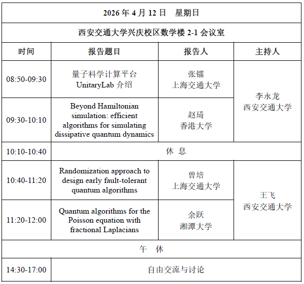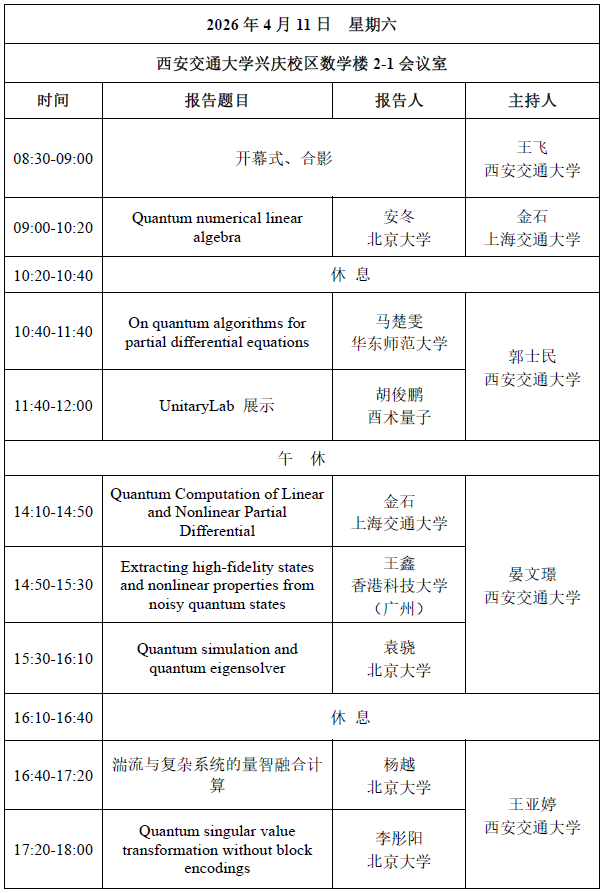 量子计算作为新一代信息技术的前沿方向,在求解大规模线性方程组、特征值问题等与偏微分方程(PDE)紧密相关的计算任务中展现出潜在的指数级加速能力,具有深远的理论意义与广泛的应用价值。本次研讨会旨在构建一个高水平的交流与学习平台,邀请国内外在量子计算与PDE数值解交叉研究领域的学者,分享最前沿的研究成果与应用实例,共同探讨该领域面临的挑战与发展机遇,推动量子计算在PDE数值求解方向的创新与突破。