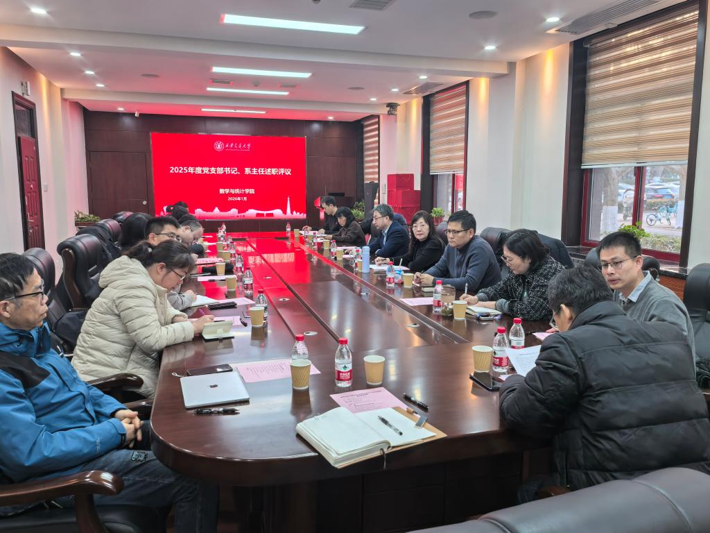 2026年1月16日上午,数学与统计学院召开了2025年度党支部书记、系主任述职评议会议。会议由数学与统计学院党委书记颜莉主持,学院党政班子成员、各党支部书记、系主任等出席会议。